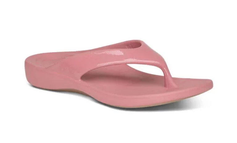 Recommended Aetrex shoes like the Maui Orthotic Flips are made out of lightweight UltraSky that provides utmost comfort, shock absorption, and durability. The dual-density outsole in these shoes provides pressure relief and shock absorption in the ball of foot and heel areas, which is perfect for high arch discomfort. Along with arch support and cushiony comfort embedded into these lightweight flips, the contoured rearfoot cradles your heel and relieves pressure.